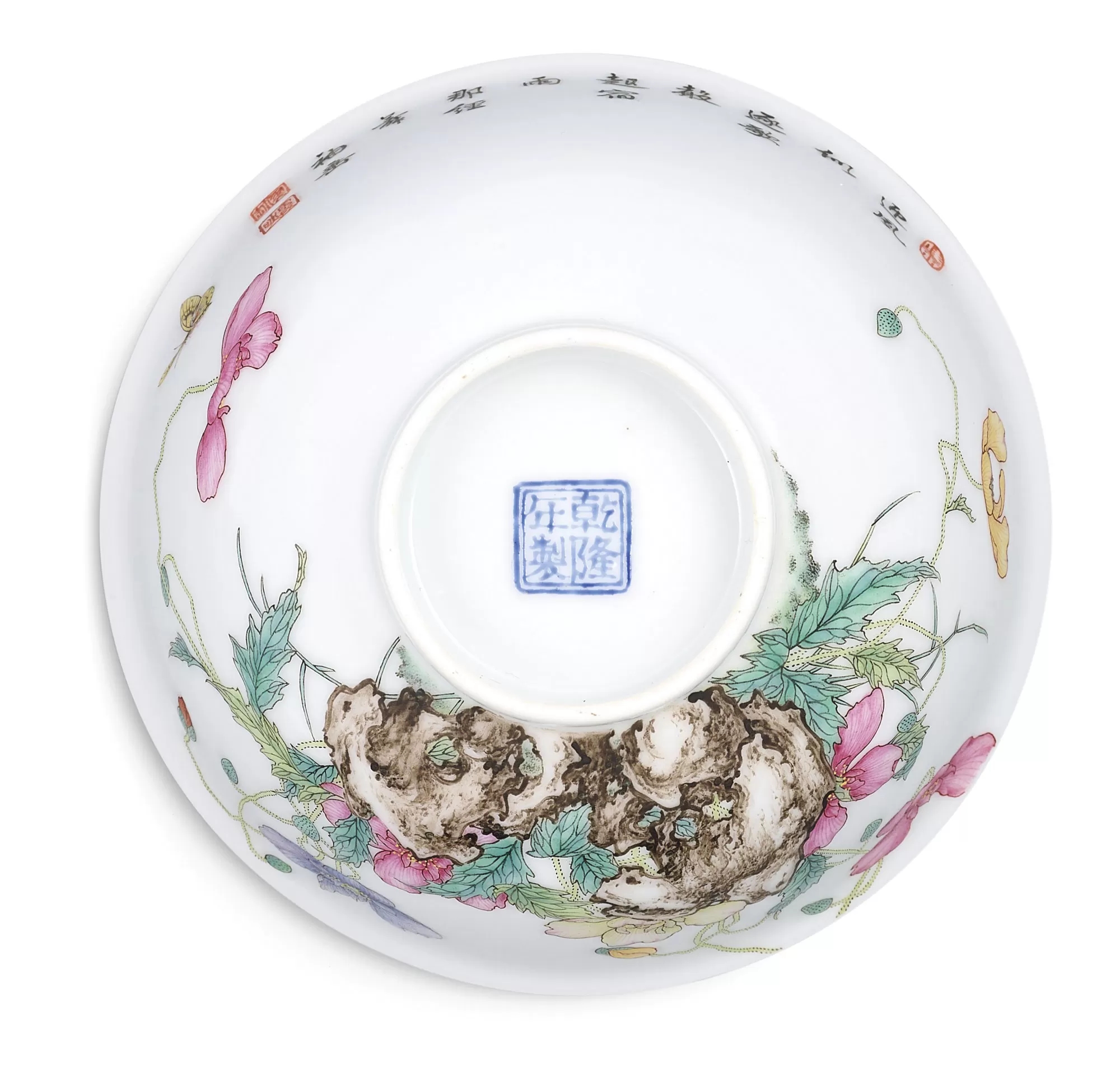 乾隆的款识见有“大清乾隆年制”六字款和“乾隆年制”四字双方框形款,有兰料也有赫色料款。