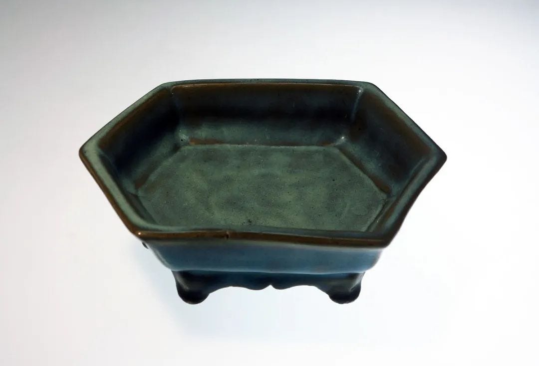 那為什麼歷史文獻上都只見有均窯而無鈞窯一詞呢?原來,明萬曆皇帝名為朱翊鈞,他即位後為了避諱,就改稱均窯。圖為國博藏鈞窯天藍釉六方形盆奩,目前年代定為北宋。