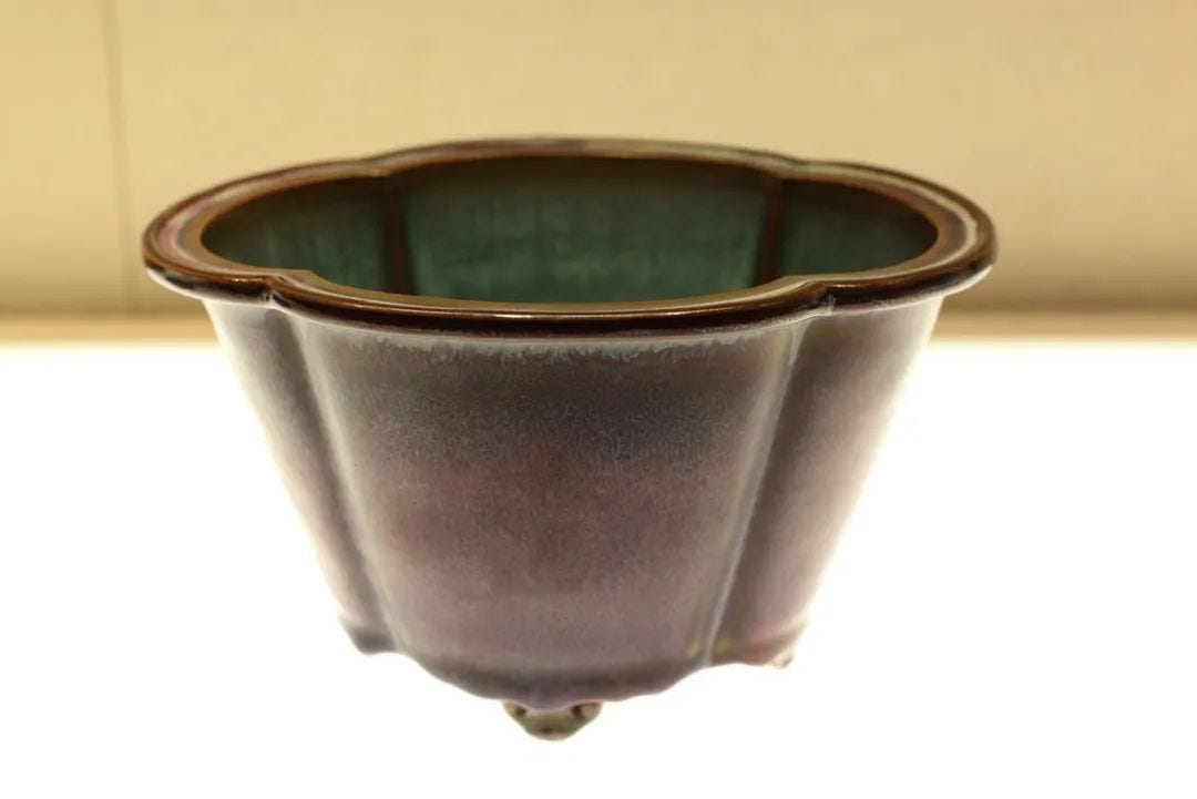 鈞窯又稱均窯,是宋代五大名窯之一。產自河南禹縣鈞台,因金代屬於鈞州而得名。圖為館藏北宋鈞窯玫瑰紫海棠式花盆。