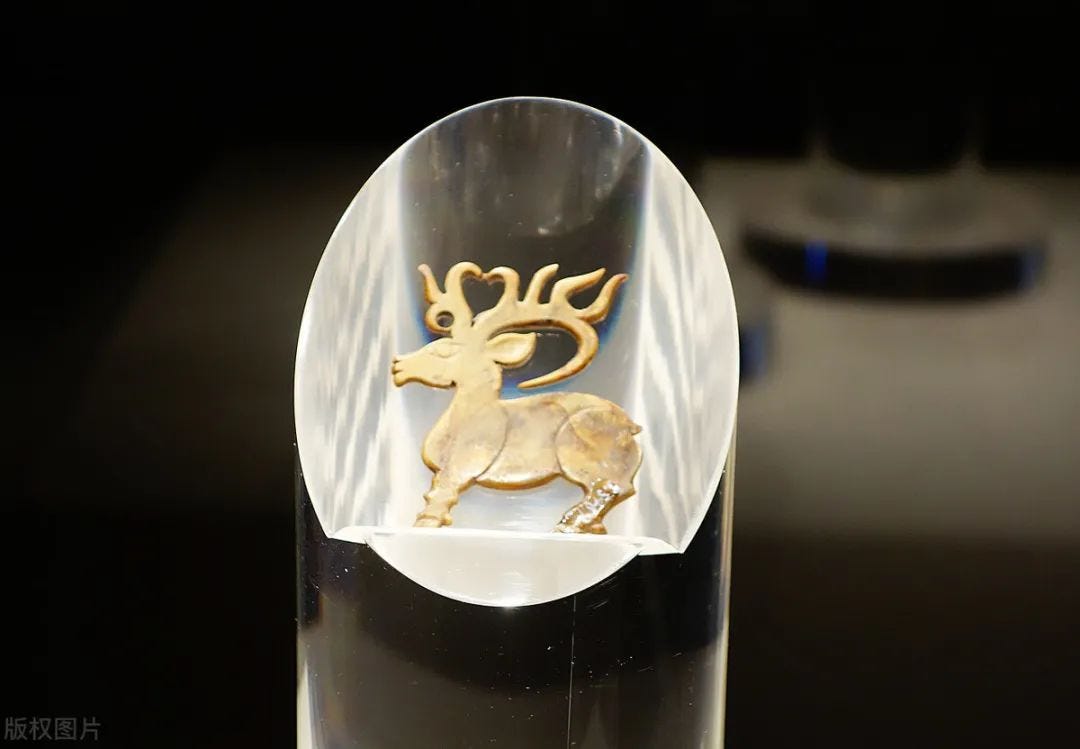 大角,在戎狄文物中多见。史料记载就是,西周先公因自闯于戎狄,从公刘始,一直与戎共狄居。胥宣斯原。既庶既繁,既顺容乃,而无永叹。陟则在巘,复降在原。何以舟之?维玉及,鞞琫刀。