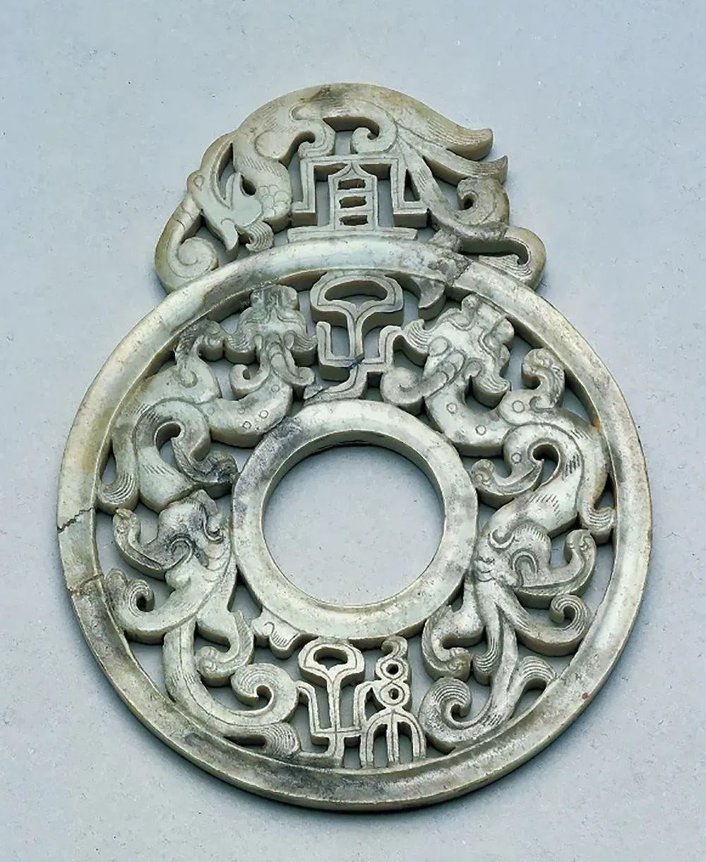 汉代 透雕双螭纹玉璧