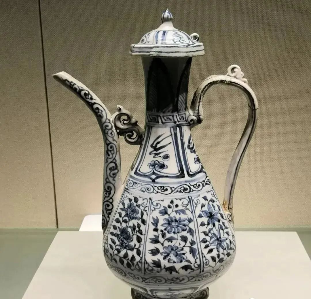元代 青花凤穿花纹执壶,北京故宫博物院藏