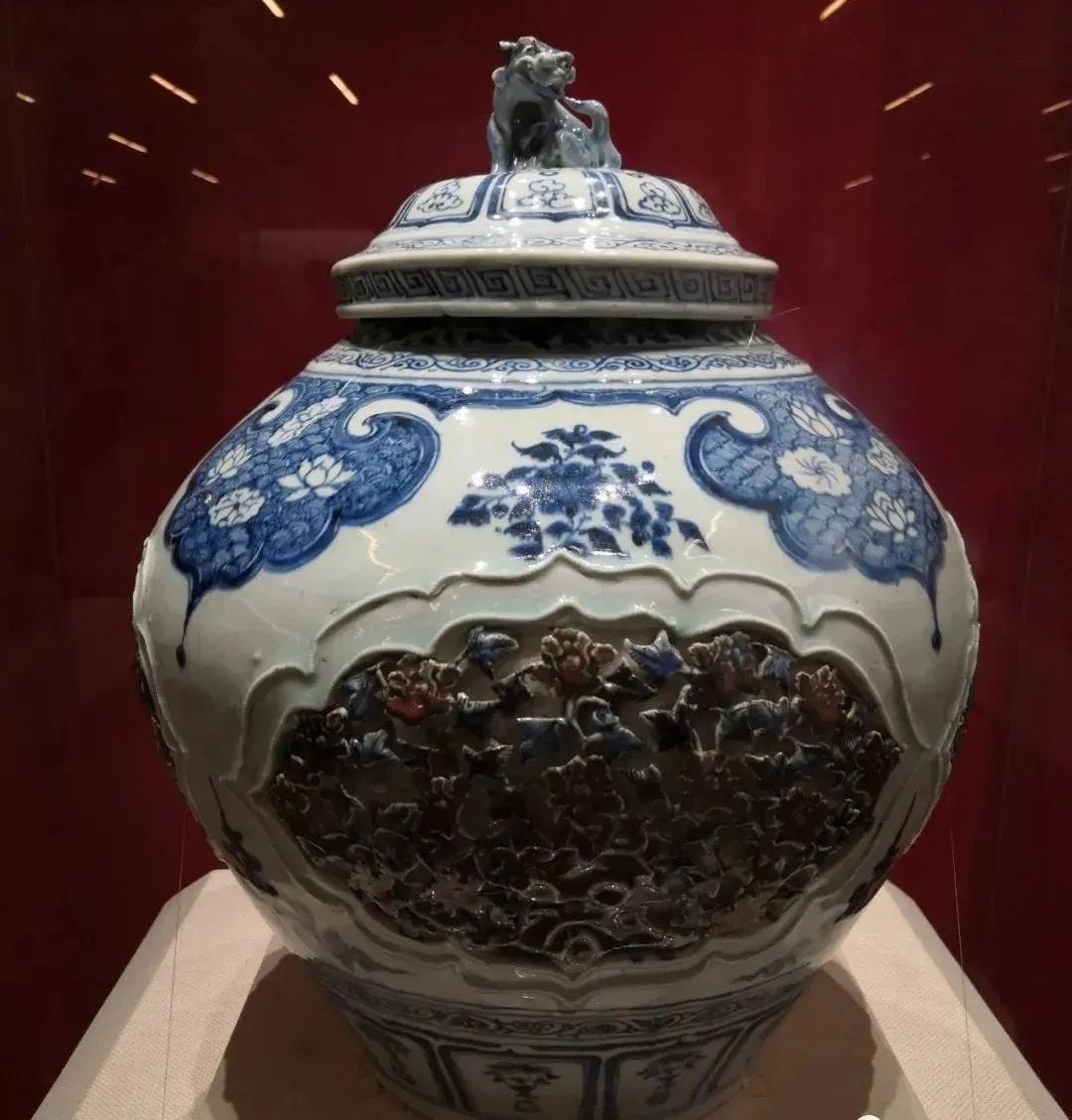 元代青花釉裡紅鏤雕蓋罐,1964年河北省保定市永華南路元代窖藏出土,河北博物院藏