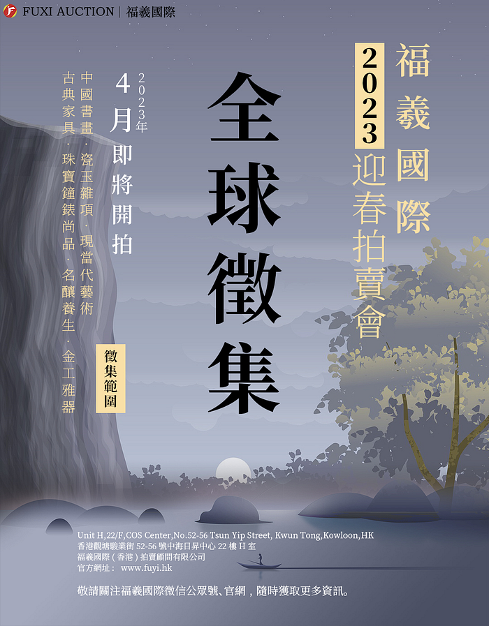 香港福羲國際拍賣公司經過11年的發展,在廣大藏家和客戶的鼎力支持下取得了不俗的成績。《福羲國際拍賣集團》專業的團隊為您的藏品,做審核、鑒定、預估、風險評估、市場分析、媒體宣傳、官網雅昌推廣、在集團眾多的VIP買家裡面,我們將為您的藏品,精淮的、針對性的、找到有意向的買家。您只需把最好的精品帶給集團,其他的壹切 集團將全心全意,用盡壹切渠道將您藏品的曝光率,成交率提到最高,福羲國際隨時歡迎您的咨詢。